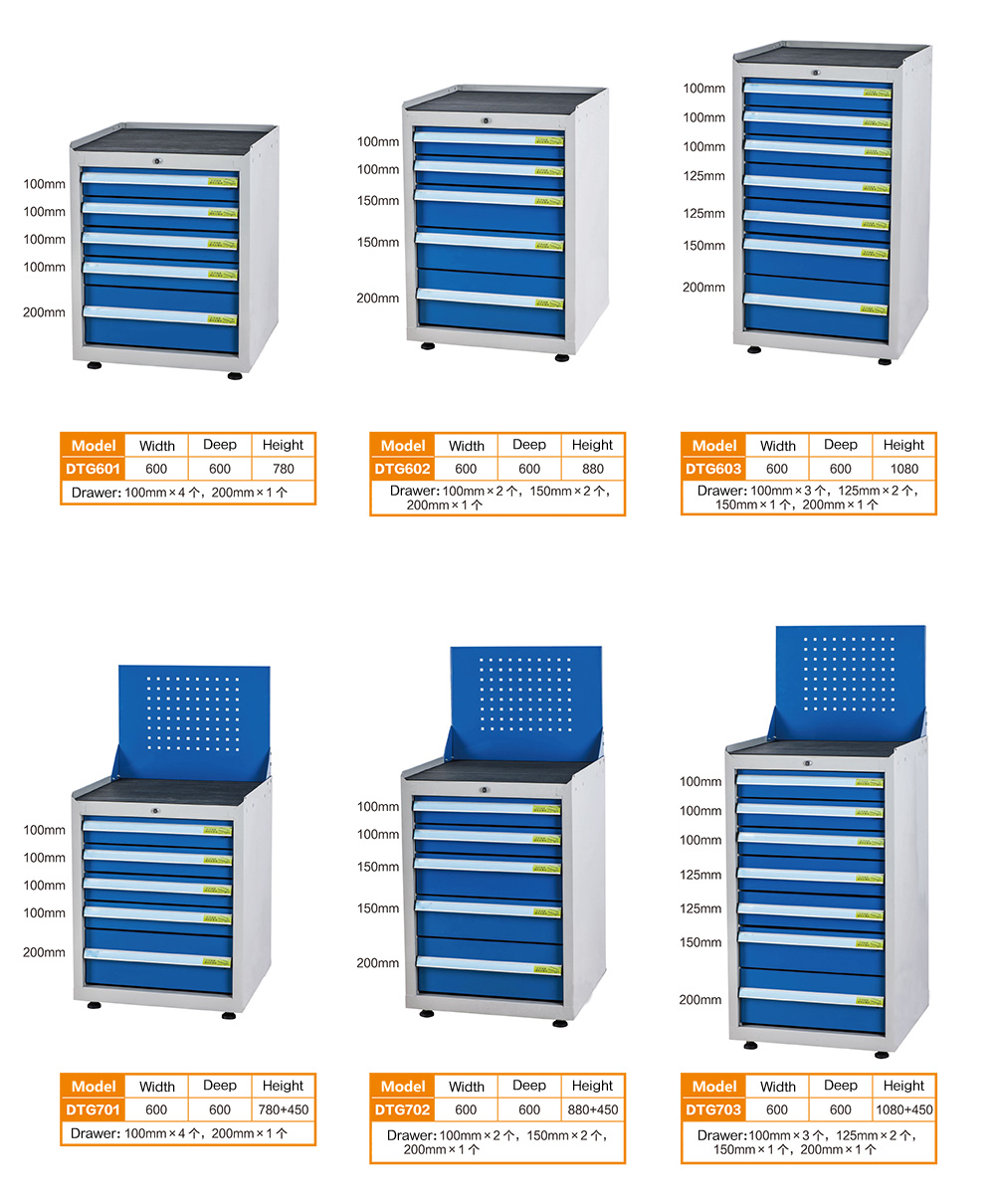 1. The width of heavy-duty tool cabinets is 600MM, and the depth is 600MM. Different models only have different total heights.