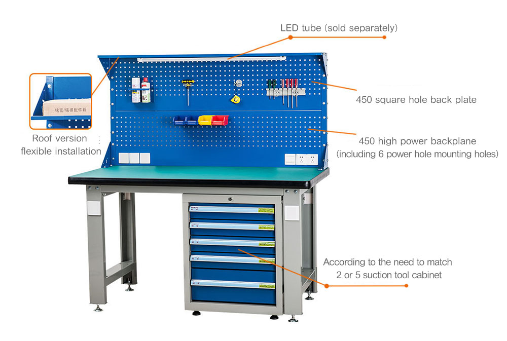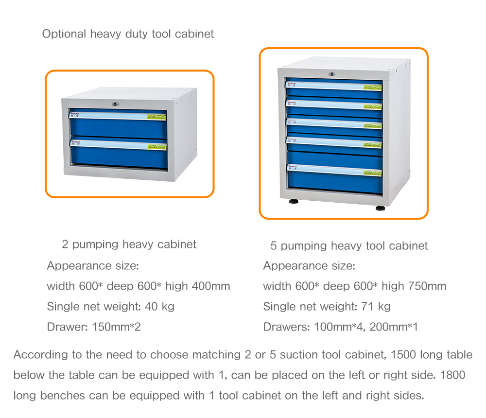 The heavy-duty table frame adopts the welding part and the single-part assembly structure, and the beam column adopts the U-shaped bending design of 16+50+100+16 to maximize the bearing capacity. Table frame material thickness 2.0MM. Design load 1,000 kg.