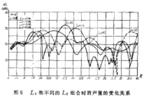 雙腔擴張式消聲器,在插入長度分別等于1/2和1/4腔長時的它的消聲量,在某些頻段總會出現一些低谷,綜合比較各種腔長組合而成的消聲器共消聲量的變化曲線,還是雙腔長度比較接近或相等時,消聲量的變化曲線比較平緩,有效頻段也較寬。即使在某些頻段出現低谷,其頻率也較窄。
